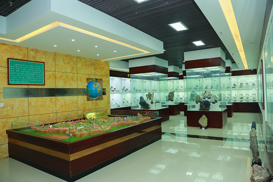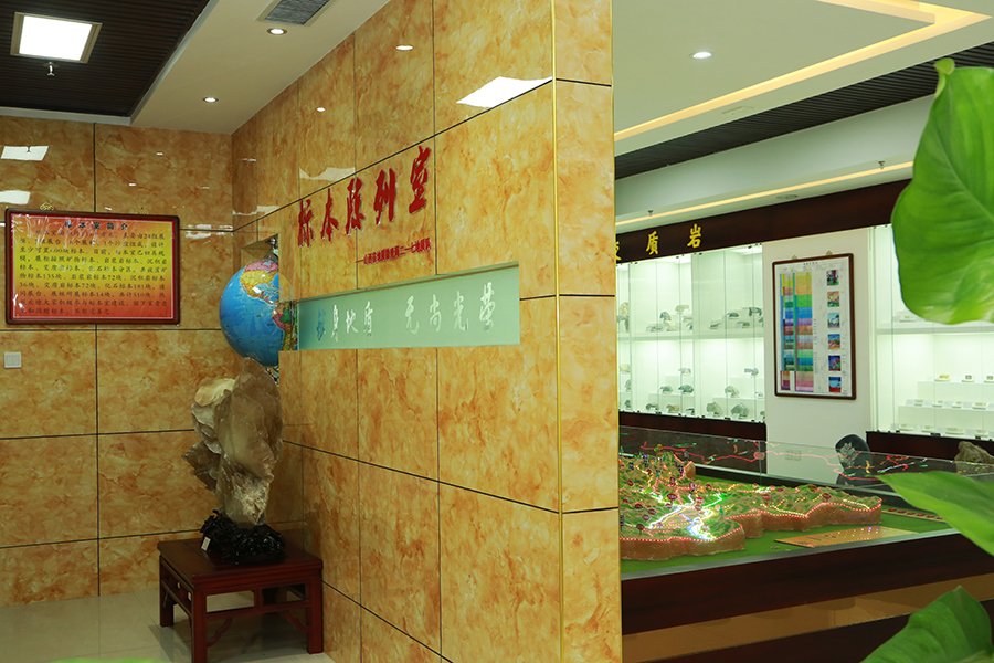 標(biāo)本室面積約135平方米,主要由24組展柜、5組展臺、8個展樁、1個沙盤組成,設(shè)計至少可置600塊標(biāo)本。目前,標(biāo)本室已初具規(guī)模,展柜按照礦物標(biāo)本、巖漿巖標(biāo)本、沉積巖標(biāo)本、變質(zhì)巖標(biāo)本、化石標(biāo)本分區(qū),共放置礦物標(biāo)本135塊、巖漿巖標(biāo)本72塊、沉積巖標(biāo)本36塊、變質(zhì)巖標(biāo)本72塊、化石標(biāo)本181塊,連同展臺、展樁所展標(biāo)本14塊,共計510塊。